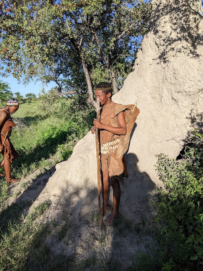 In the afternoon, I went on the bushman’s walk activity. I had been a little worried about that — I mean, I’m a lady who uses wheelchairs for airport distances, and I wasn’t at all sure how far the bushmen would take us. But it all worked out fine, because there was so much for them to show us in a small area that we never actually went very far… while learning an enormous amount.
