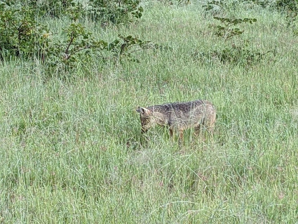 His toy was a spring hare — the same kind of animal we’d seen alive a couple of nights ago, and exclaimed over just as much as we were exclaiming over the jackal right now. And rightly so; they were both entirely adorable. But fundamentally, spring hares are a staple prey for jackals. You can’t really have both of them safe at once; if you wish safety for the prey animals, you are implicitly wishing starvation for the predators. There’s no third way.