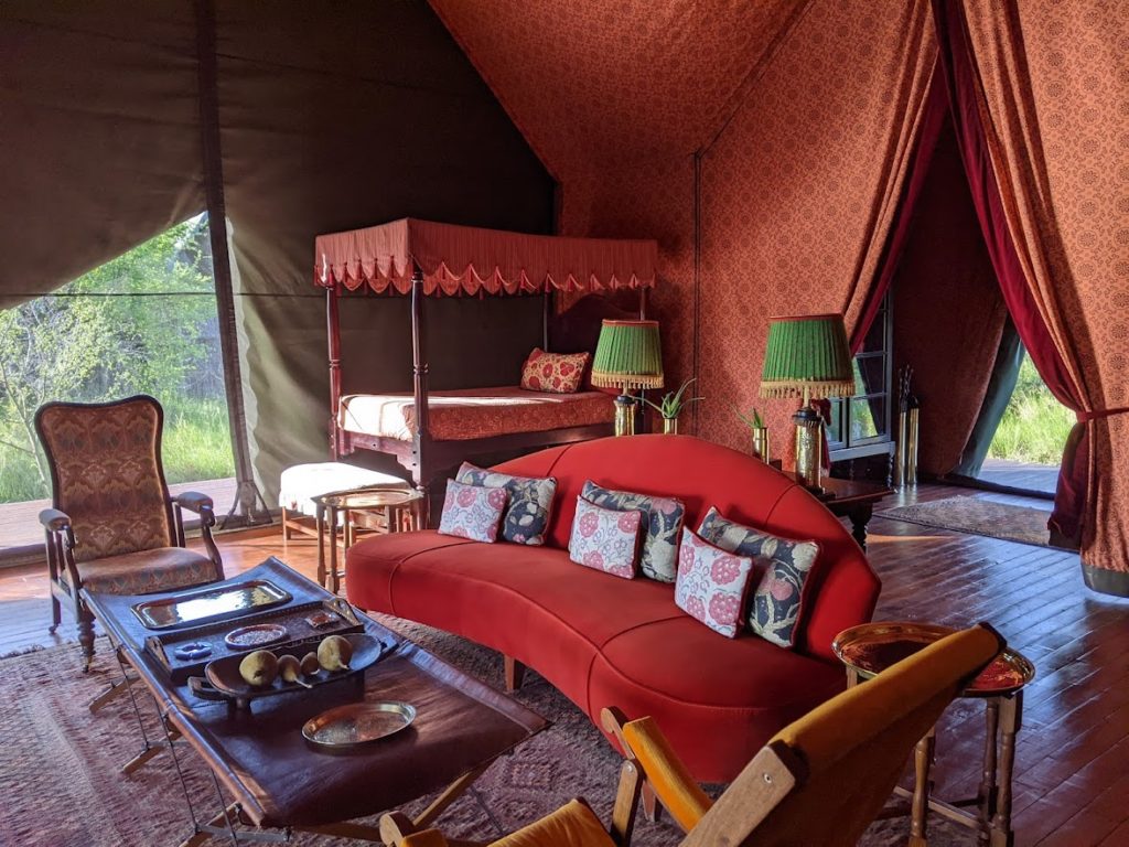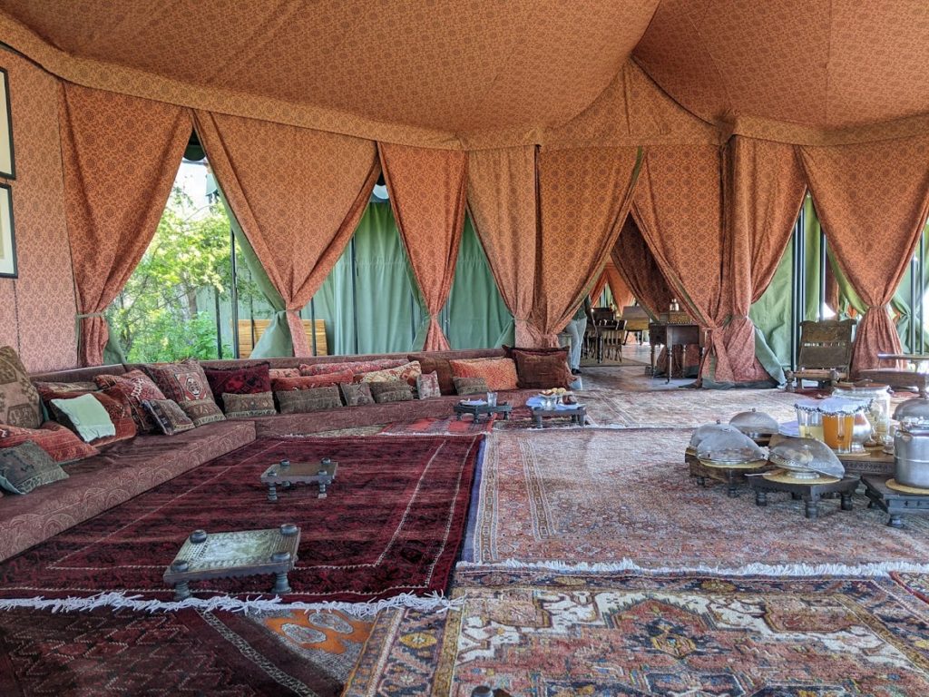 The “mess tent” of Jack’s may be even more spectacular than the private tents. Also done in grand colonial style, it includes a long, formal dining room; a living room with library, deep leather sofas and gaming tables; a separate bar with a billiards table, and a stunning octagonal room decorated in Moroccan style and used for nothing but afternoon tea.