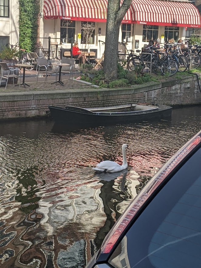 I finished the Uganda trip in Entebbe two nights ago, in a pouring rain. It’s a good thing I met Susie the shoebill in the zoo, because I never even got the opportunity to go on my boat ride to look for wild ones — the rain prevented any chance, so I just took a quiet day at the hotel and then flew overnight to Amsterdam, arriving early yesterday morning. My oldest friend lives here — we were eleven together, far too many years ago in New York City. Now she lives in Amsterdam, and I couldn’t resist visiting her on the way back from Africa since most of the flight options available to me changed planes in her city anyway.