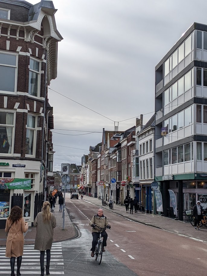 We got out early this morning to take the train to Leiden. I was very pleased to see that the train system in the Netherlands works supremely smoothly and easily — good train systems are a passion of mine. Leiden was only 45 minutes away, which would have been a suburb in the Seattle area, but they don’t really have suburbs in the Netherlands. They have a town, and then blip! you’re in the middle of farmland, and then without any obvious transition you’re in another town. Since I am not fond of suburbs, this delights me. They also have bike lanes everywhere, including on the highways between one city and another. We actually saw people using them, too. The Dutch are serious about their bicycling.