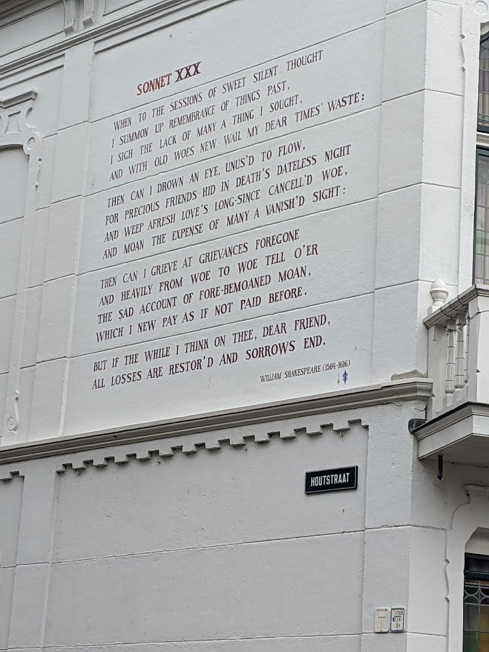 Shakespear's Sonnet 30 (link in caption), carved in capital letters and seen from below the lower right-hand corner.