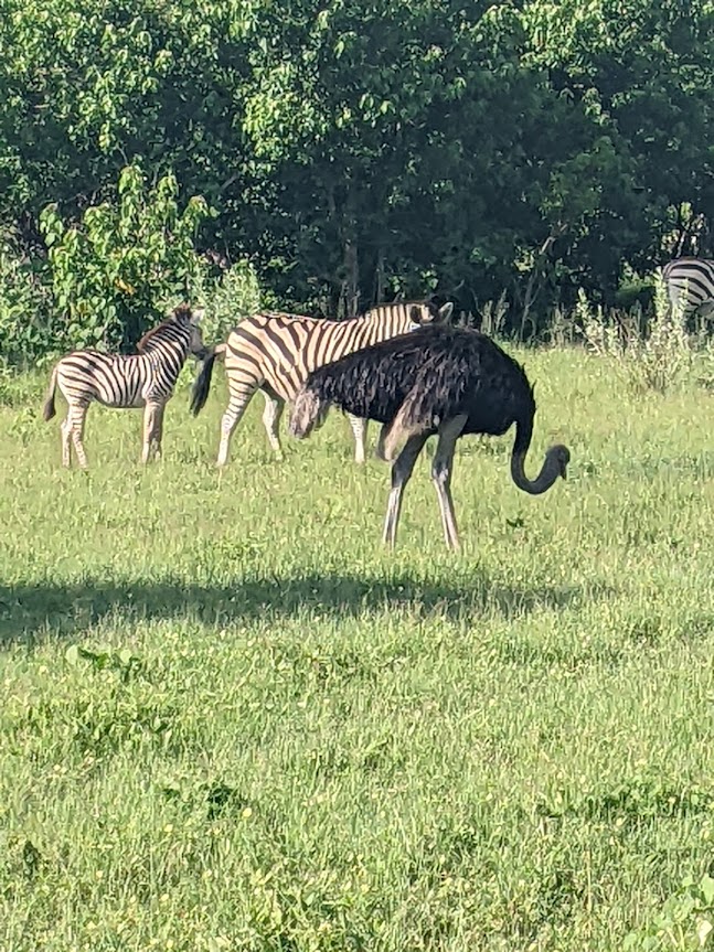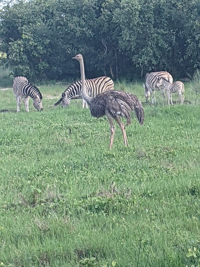 Ostriches hang out in the vicinity of grazers as well. Their keen eyes allow them to see danger from much farther away than the mammals can, so the mammals like to have them there. But the ostriches need to eat too, and it helps them to know that when they do put their heads down, there will be many other pairs of eyes looking out for trouble.