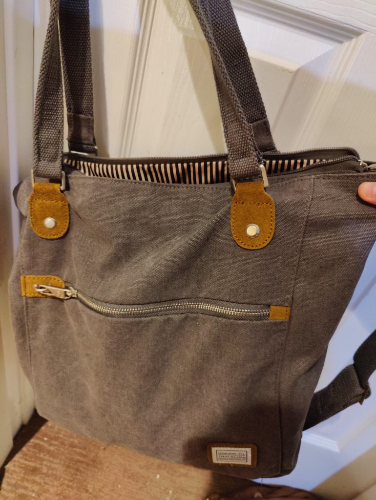 The last piece of travel gear I’ve bought for this trip is a theft-resistant purse. My stepmother recommended this, saying that pickpockets in Italy are common and skilled. It has knife-resistant straps and a knife-resistant base so it’s hard to either cut off my shoulder or slice into; it has an RFID blocking pocket for cards and such (I have an RFID blocking wallet as well, bought months ago), and all the zippers which close its various pockets have carabiner clips at the ends, to attach them to metal loops and make it very difficult to an intruder who was hoping to zip one open in a crowd and lift my wallet.