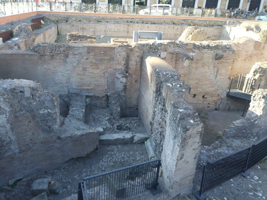 This is not part of the Forum; it’s just a random archaeological site that popped up while the Roman city government was digging a subway station. J wanted to show it because he found it fascinating that this sort of thing happens randomly around here, and so do I. Photo by J.