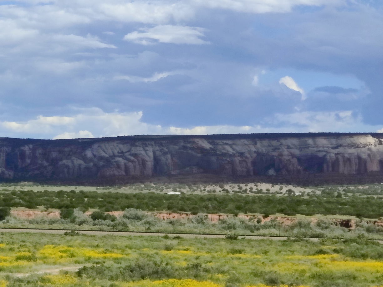 He did great. Even with road work making some of it a difficult drive — and the endless distraction of the gorgeous mesas — he did two and a half hours with only one brief break. That was at the Petrified Forest, which I had seen in a David Attenborough video. I was strongly tempted to go in and look around, but we couldn’t if we intended to make Albuquerque that night. So I just looked at what I could from the entrance where we paused for a few minutes, and then we got back on the road.