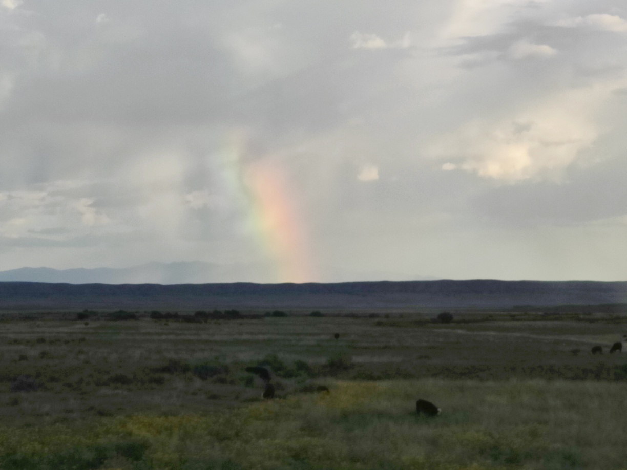 But we got on the road again and tried to pry our nerves off the ceiling… we were not as calm as we had appeared! The spectacular scenery helped a lot. We began watching the beautiful mesas as we drove, and C even got a picture for me of a stunning rainbow, only a half hour short of Albuquerque.