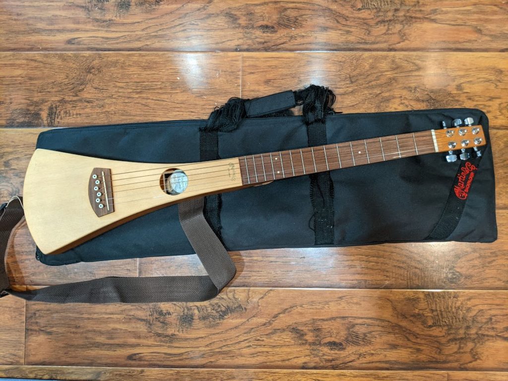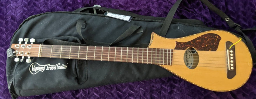 Meet Plink, my Vagabond travel guitar. There are several ways to travel with a guitar; using one that fits in the overhead bin on a plane is only one of them, but it’s the safest and least nerve-wracking.